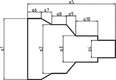 輸出和輸入的向量設計,是將鍛件的特征信息模型進行必要的數(shù)據(jù)處理,對數(shù)據(jù)進行歸一化處理,把所有的數(shù)據(jù)都放置于[0.1]之間,主要原因為隱藏層所選用的是Sigmod型激勵函數(shù)。圖29是萬向節(jié)鐘形罩最終鍛件的外形簡要圖,鍛件特征信息模型的初始數(shù)據(jù)取自此圖。圖30是萬向節(jié)鐘形罩的模具圖,輸出向量的數(shù)據(jù)取自此圖,主要是相應模具的關(guān)鍵尺寸。